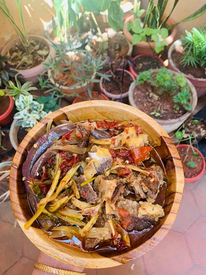 I cook and deliver real Naga meals in Bangalore using ingredients from Nagaland and my kitchen garden, with a changing menu and pre-order system.