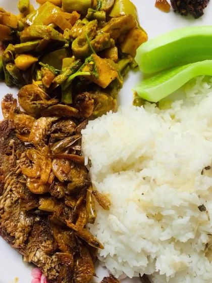 I love cooking with fish, both fresh river fish and dried fish. I make simple fish fries, flavorful curries with bamboo shoot, and the special Pongsen style fish steamed with herbs. I also make a delicious chutney with dried fish.