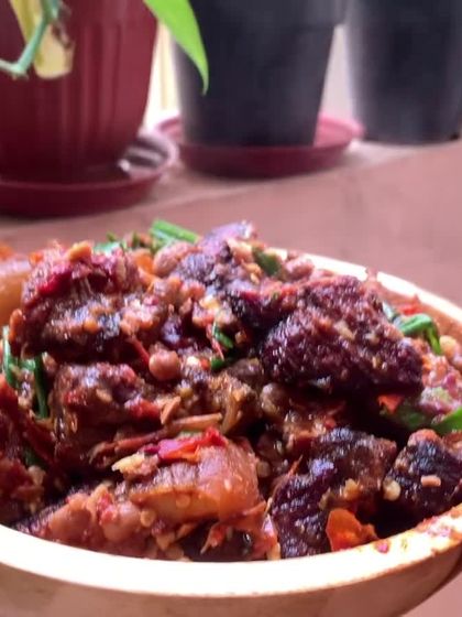 I offer a variety of beef dishes, from simple stir-fries to rich curries. For the more adventurous, I also prepare traditional delicacies like beef innards, lungs, and crispy beef skin, all cooked with authentic Naga spices.