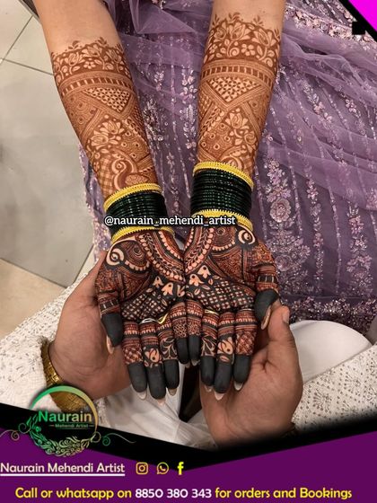 I specialize in creating intricate mehendi designs specifically tailored for engagement ceremonies. My designs incorporate traditional patterns and motifs that symbolize love and commitment, while allowing space for personalization through custom elements like names, dates, and meaningful symbols.