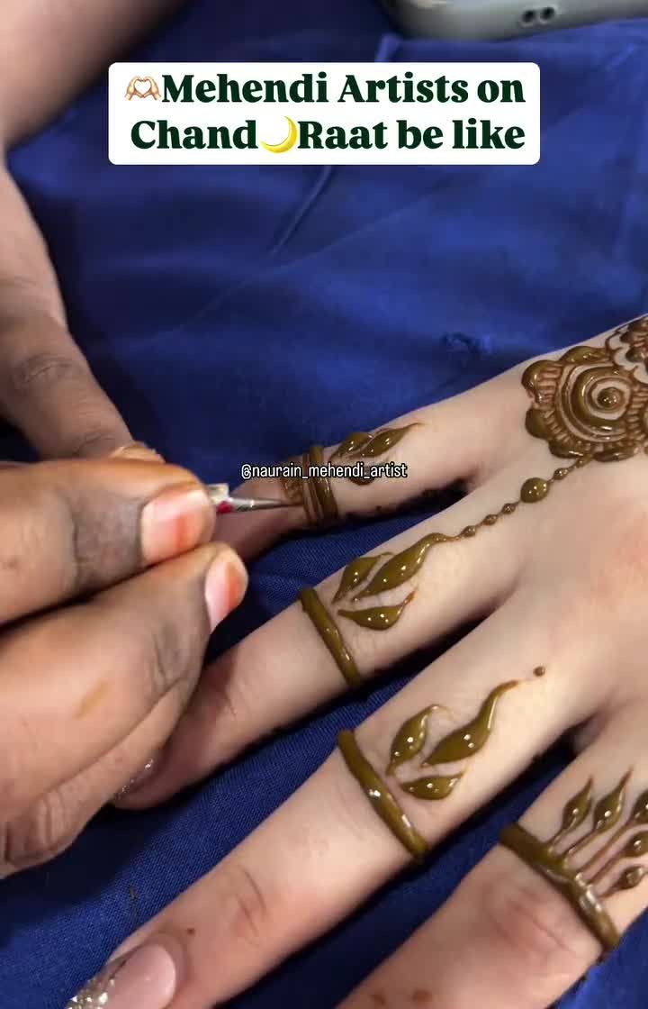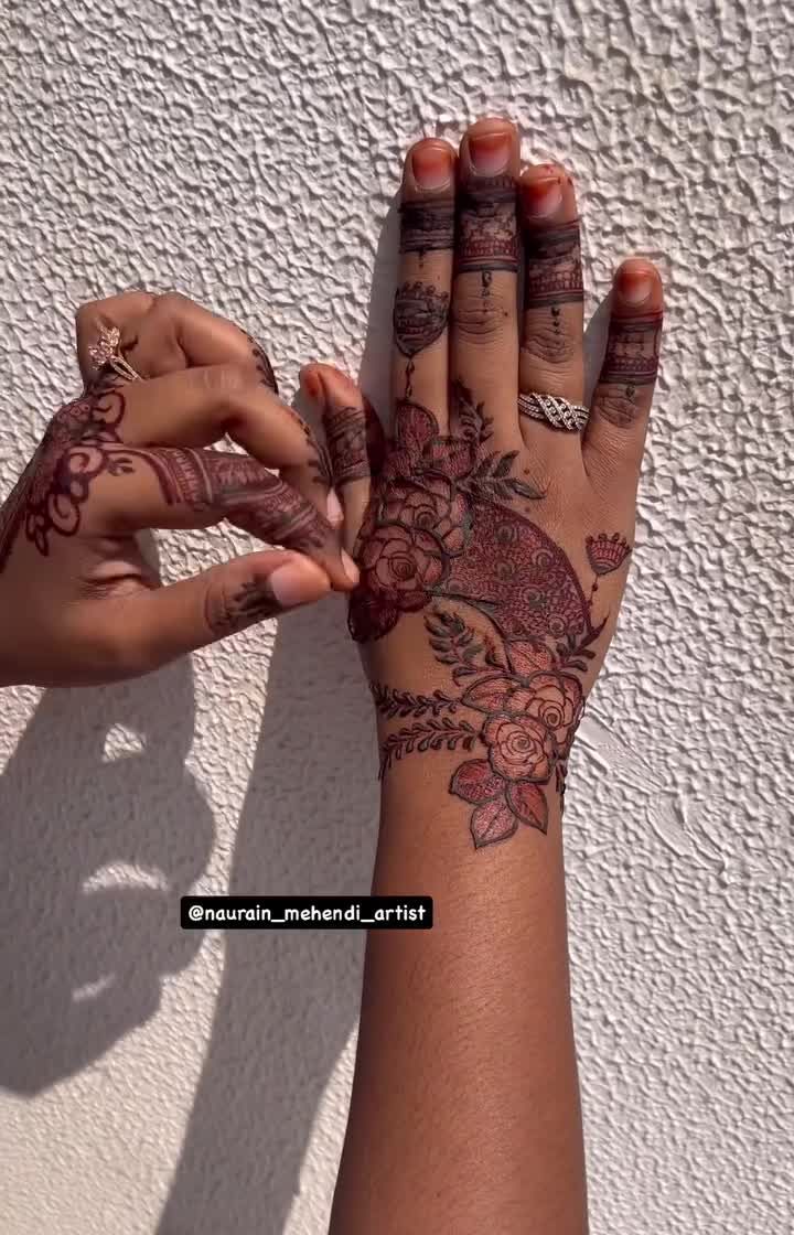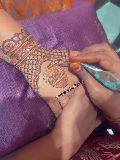 See the magic happen. Here’s a peek at my steady hand and the detailed process of bringing these intricate henna designs to life, from the first line to the finished piece.