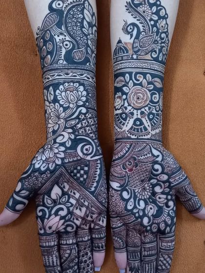 Detailed Bridal Mehandi - Specialty hai detailed bridal mehandi - Rajasthani, Marwari, Madhubani, Bombay Style, Jaipuri, Arabic sab milta hai.