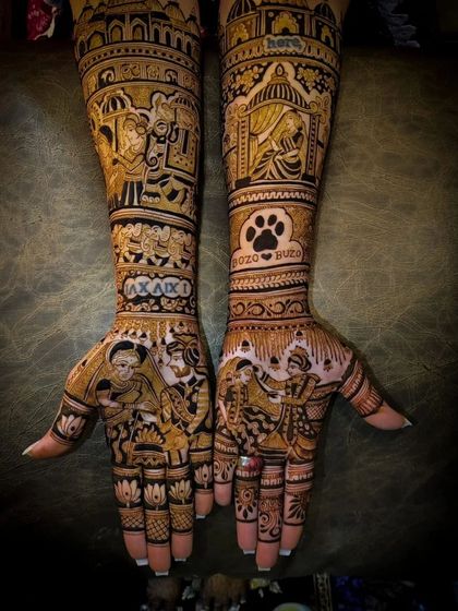 Detailed Bridal Mehandi - Specialty hai detailed bridal mehandi - Rajasthani, Marwari, Madhubani, Bombay Style, Jaipuri, Arabic sab milta hai.