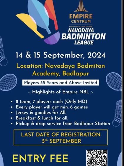 We organize competitive badminton leagues throughout the year, including our flagship EMPIRE Navodaya League and Yonex-Sunrise League. Players compete in structured matches across different age groups and skill levels.