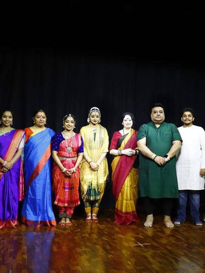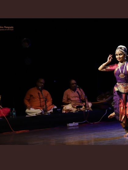 Live Ensemble Experience - Performing with live Carnatic ensemble—vocal, Nattuvangam, Mridangam, Veena, Flute—makes each show immersive.