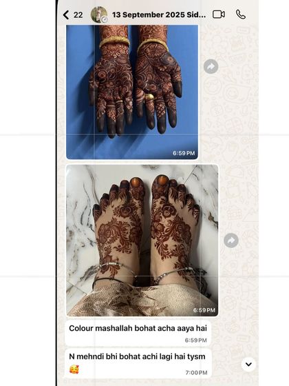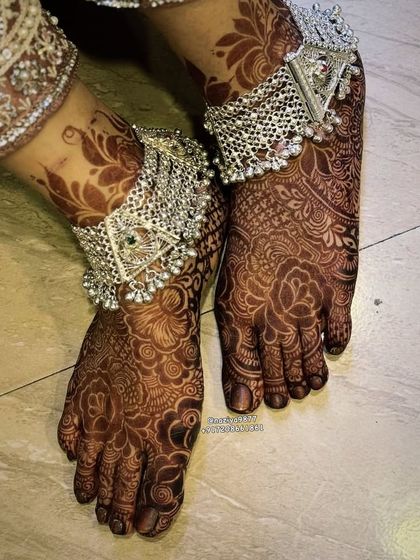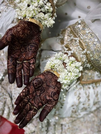 I do full bridal henna with my signature hibiscus designs, custom personal touches, homemade natural paste, and apply at your place for a deep, long-lasting stain.