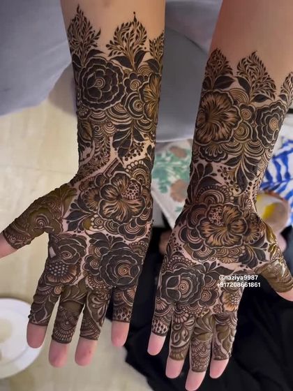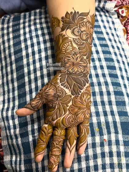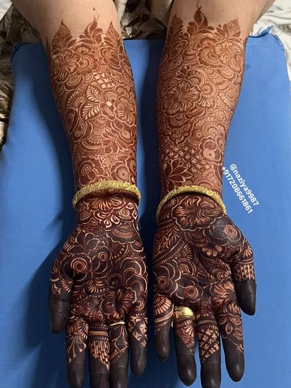You get detailed coverage - hands, arms (front and back, up to the elbows), feet, and legs (up the shins). I coordinate the symmetry so your mehendi looks flawless in every photo.