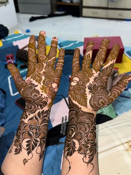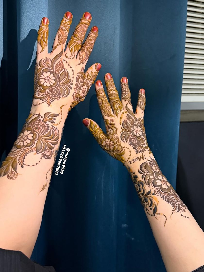 This is my specialty, perfect for the main guests at a sangeet, engagement, or Eid. I combine classic Indian motifs like paisleys and mandalas with my signature floral work, creating dense, full-coverage designs that guarantee a beautiful, dark stain.