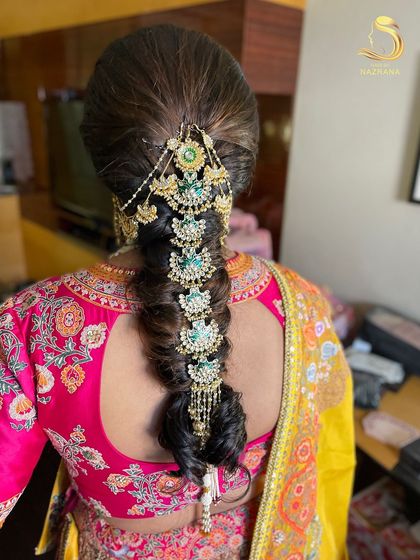 Accessories and texture matter. I use fresh flowers, pearls, gajras, whatever makes the look pop. Short hair? Fine hair? No stress, I blend extensions so your hair feels natural and looks next level.