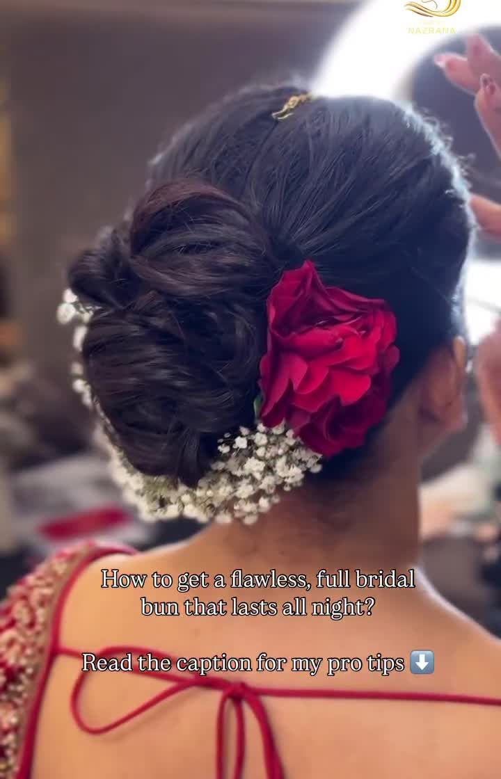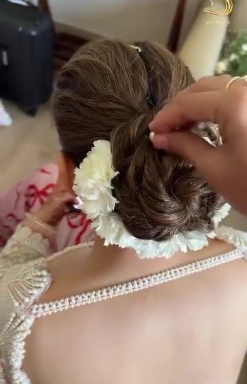 A bridal bun is more than just a hairstyle, it’s a crown. I specialize in creating a variety of updos, from classic sleek buns adorned with fresh flowers to intricate textured styles with pearls and temple jewellery. My focus is on making them look full and beautiful while ensuring they are comfortable and secure enough to last through all the wedding festivities.