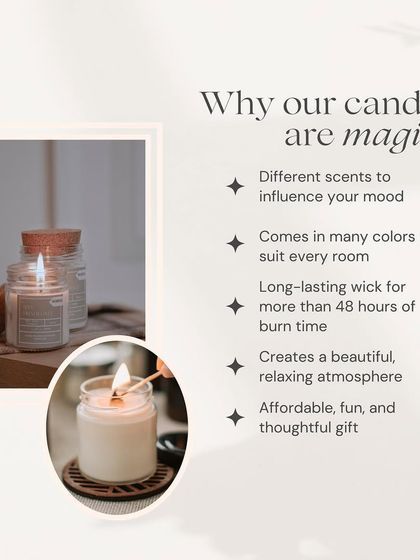 - Wax Type: 100% Pure Soy Wax (Chemical-free).