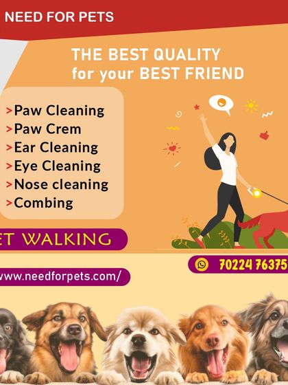 We walk your pet at your doorstep and give full post-walk care including paw cleaning, cream, eye/ear/nose cleaning, and combing so your pet comes back fresh and tidy.