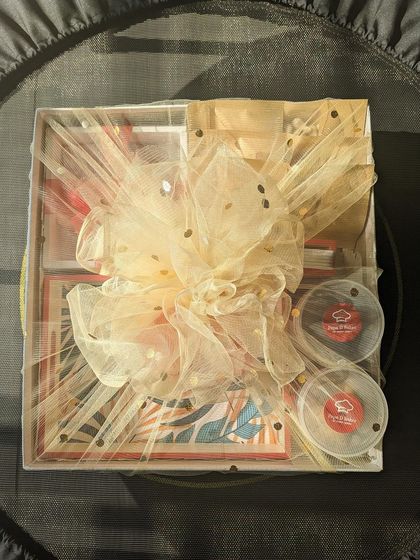 Looking for a unique gift? I curate beautiful, handmade hampers for all occasions, like Christmas, Rakhi, or baby showers. Each hamper is filled with a selection of my handcrafted products, from soaps and coasters to cookies baked by my husband.