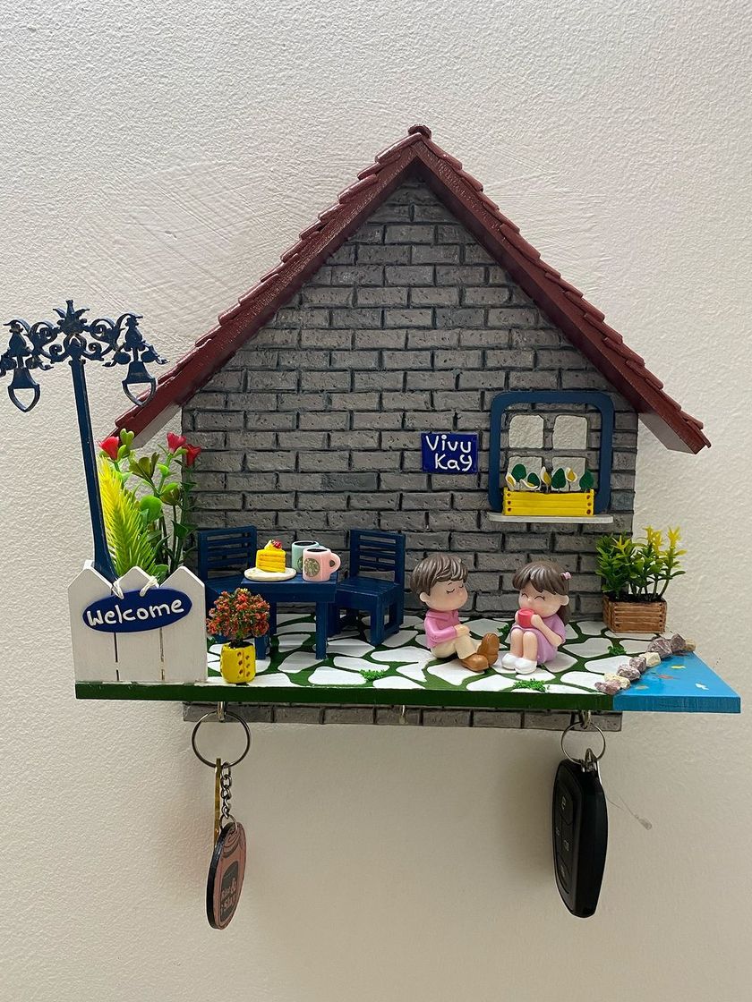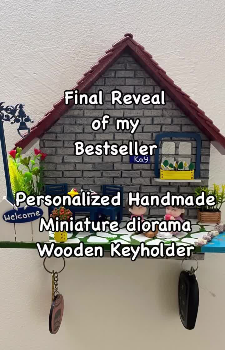 My absolute favorite pieces to create. These custom wooden nameplates tell your family's story in miniature, with tiny clay figures, detailed brick walls, and even a functional keyholder. Each one is a unique piece of art for your entryway.