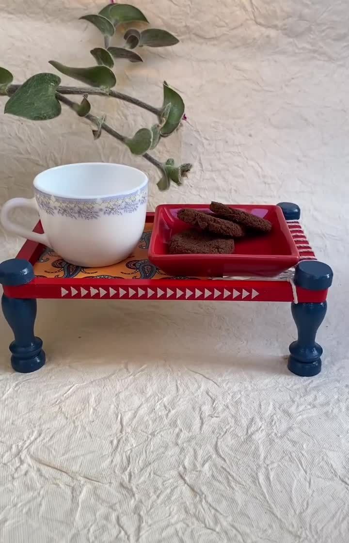 Serve your guests in style or simply organize your trinkets with these water-resistant, hand-painted trays and coasters. I offer a variety of designs, from the popular 'khaat' tray to elegant vintage patterns and quirky button-themed coasters.