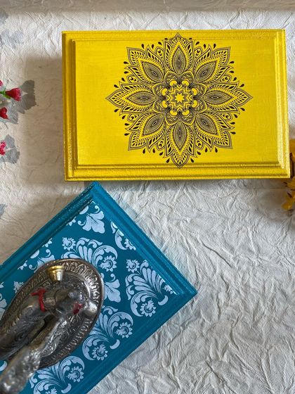 Each piece is handcrafted using MDF wood and decorated with detailed hand-painting. My designs blend traditional art forms with contemporary aesthetics, making them unique conversation starters.