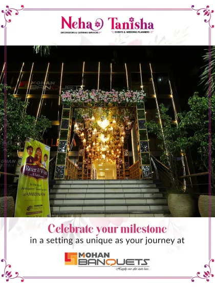 Experience the regal ambiance of Mohan Banquets. From the grand, decorated entrances to opulent stage setups and intricate interior details, this venue is designed to make your wedding, engagement, or special occasion feel truly majestic.