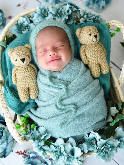 My studio is filled with a wide variety of soft wraps, cozy baskets, and beautiful props to create timeless portraits. I style each setup with a focus on safety and comfort, using different color palettes and textures like knits, furs, and florals to make your baby the star of the show.