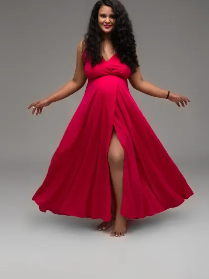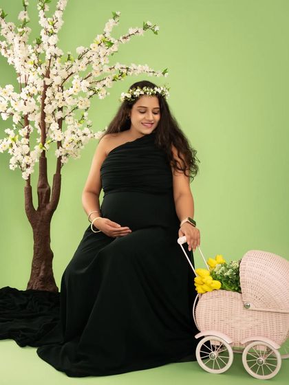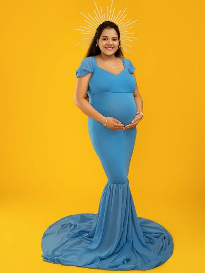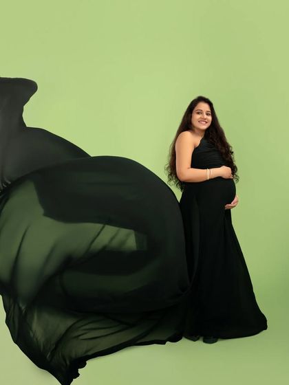 We offer maternity photoshoots in Jaipur’s largest AC studio with private makeup rooms, a wide range of gowns and props, and personalized shoot styles so you just show up and we handle everything.