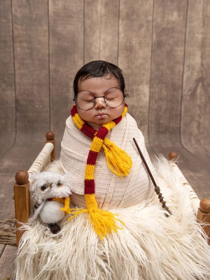 We photograph newborns and babies up to one year in our fully equipped studio, with themed setups, milestone sessions, and family portraits included; you just bring your baby, we handle everything else.