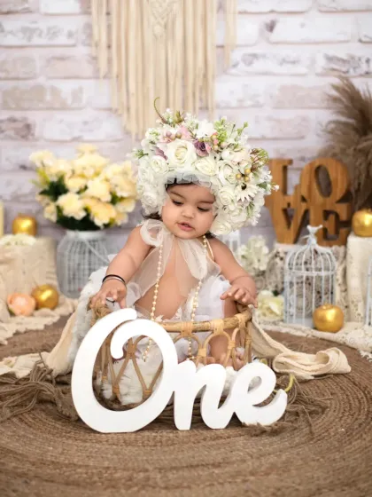 We specialize in creative cake smash photography sessions for your child's first birthday celebrations. Our fully equipped studio provides themed setups, props, and professional lighting to capture those messy, joyful moments.