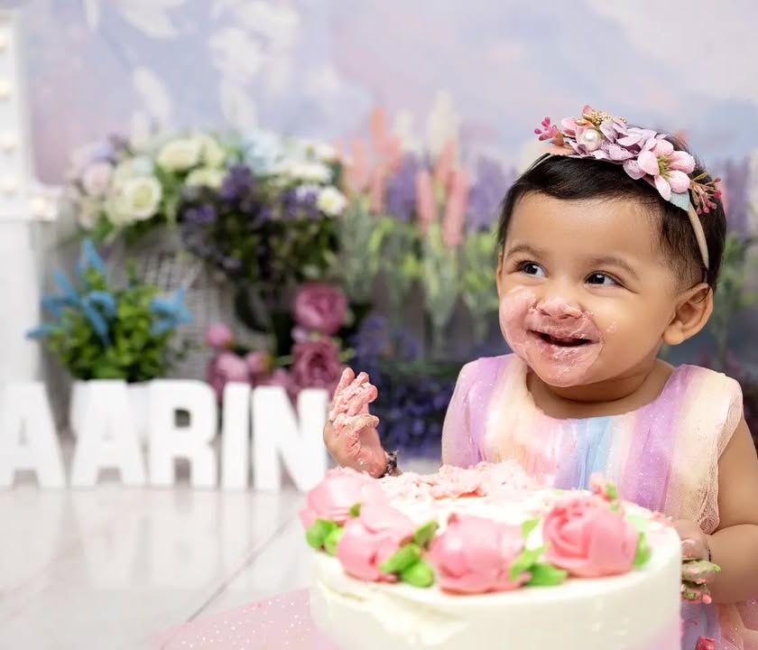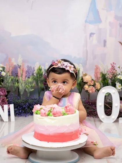 Let's make a mess to celebrate the first birthday. Our cake smash sessions are all about fun, laughter, and capturing your baby's joyful and chaotic reaction to their first taste of cake. We also offer unique milk and fruit bath "splash" sessions for a fun and creative way to get clean.