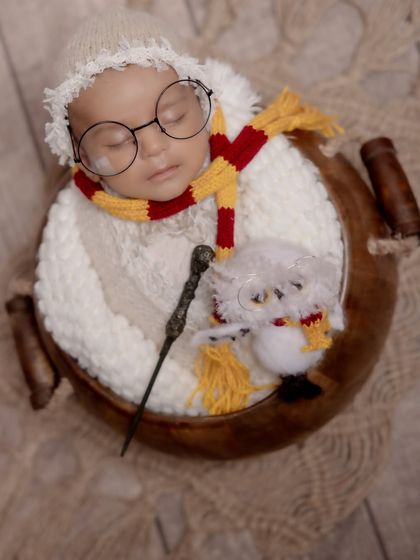 Let your imagination run wild with our creative themed photoshoots. We pride ourselves on designing unique and magical worlds for your baby, from Harry Potter and fairytale castles to rustic forests and sunny beaches. Our extensive collection of props and backdrops in Rajasthan's biggest studio ensures every shoot is a one-of-a-kind adventure.