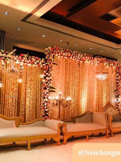 The stage is the heart of your reception, and I specialize in creating large-scale backdrops that leave a lasting impression. My designs range from opulent floral installations and glittering crystal curtains for a classic look, to modern setups with geometric patterns and unique lighting for a contemporary feel.