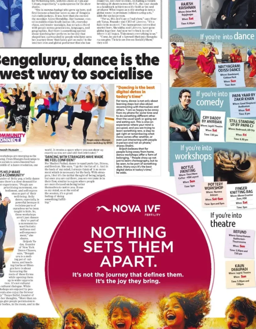 We were thrilled to be featured in Bangalore Times for our role in building a vibrant social dance community in the city. It highlights how our events are becoming the new way for people to connect and socialize.
