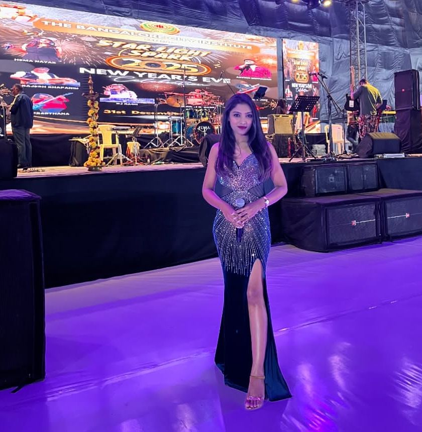 As a proud 'Bengaluru Hudugi' (Bangalore girl), I connect with diverse audiences by hosting fluently in English, Kannada, Tamil, and Telugu. Whether it's a corporate R&R event or a traditional wedding, my multilingual skills ensure everyone feels included.