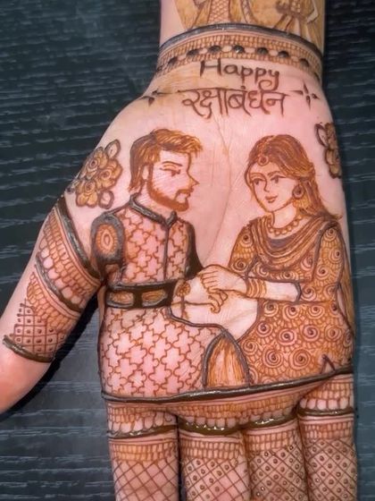 Your wedding story, drawn on your hands. I specialize in creating custom portrait mehandi, from depicting wedding rituals like the baraat and doli to capturing romantic couple moments and divine figures like Radha Krishna or Shiv Parvati.