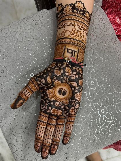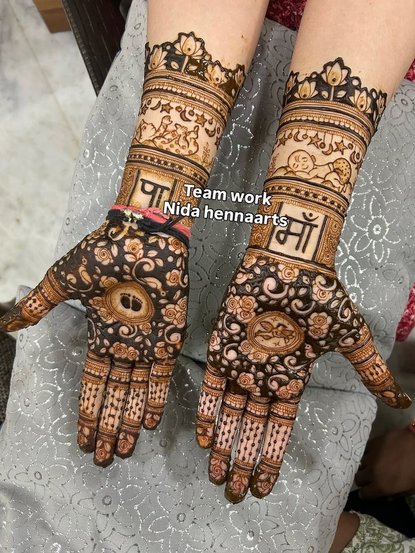 Celebrate the journey to motherhood with personalized godh bharai mehandi. I love adding special touches like baby footprints, "Mom to be" text, or the Marathi word "paaul" to make your design truly memorable.
