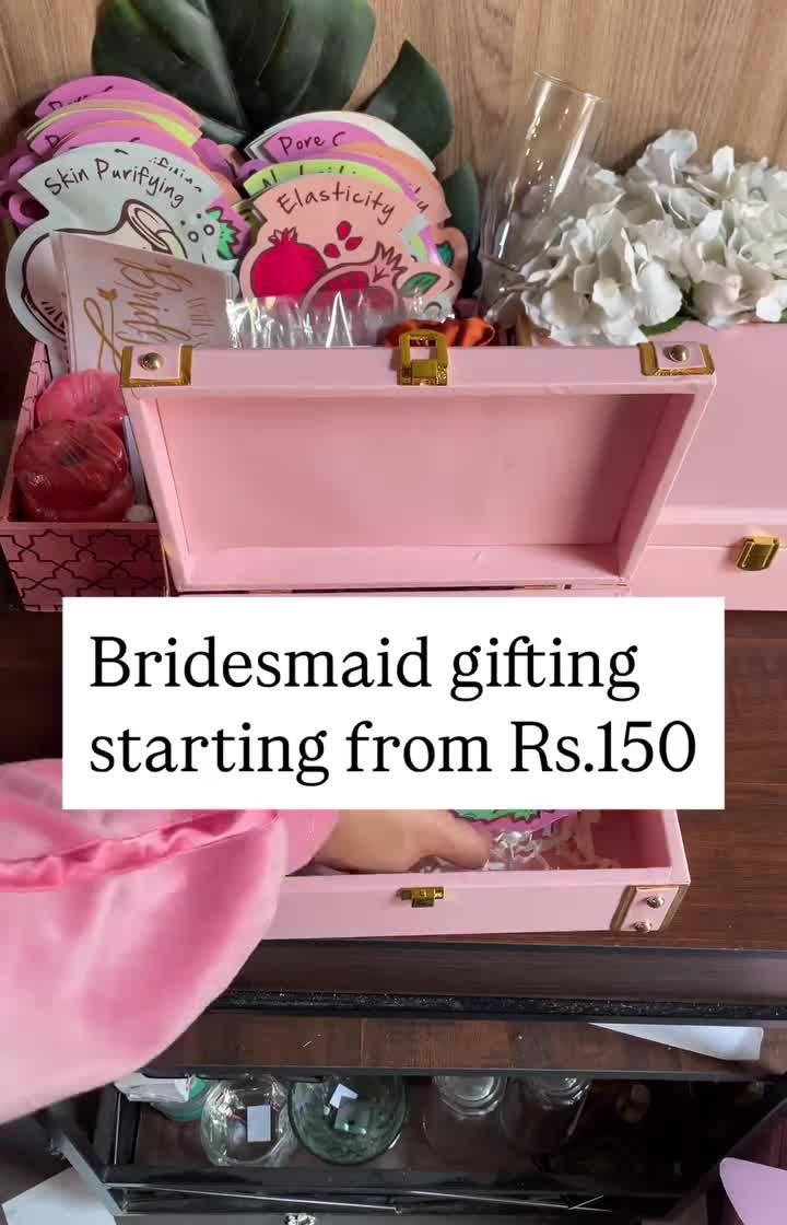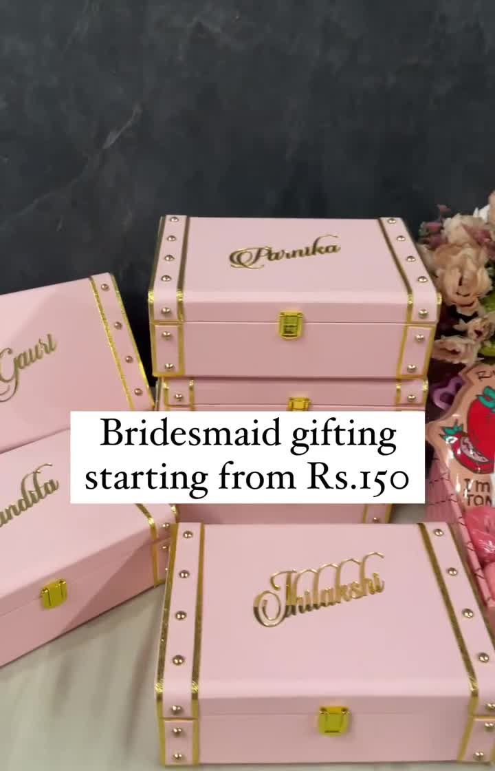 Ask your best friends to join your bride tribe with a gift they'll love. I create fully customized proposal boxes and trunks starting from just ₹150, filled with items like skincare, scrunchies, personalized cards, and of course, your favorite photos together. You can pick from my menu or build your own box to fit your budget and style.