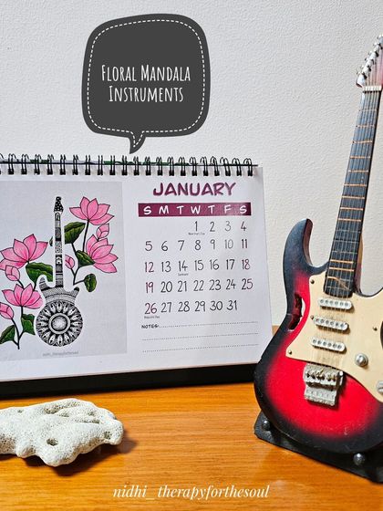 My fourth edition of the annual desk calendar is a celebration of art, music, and nature. Each month features a unique digital illustration combining a flower with a musical instrument, detailed with my signature mandala patterns. It's printed on high-quality cardstock and is available for pre-order, with discounts for bulk purchases.