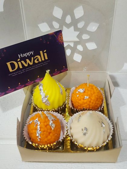 I make fresh, handmade festive candles, soaps, and snan kits in small batches with unique themes like mithai shapes and traditional clay diyas.