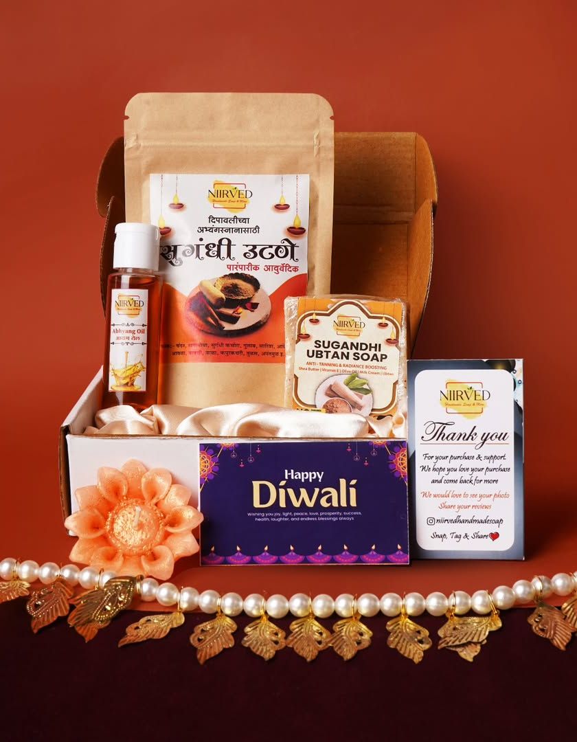 Embrace the tradition of the auspicious Diwali bath with my specially curated Abhyang Snan kits. Each kit contains my homemade Sugandhi Ubtan (Utane), nourishing Abhyang oil, and a matching soap, all made with pure, Ayurvedic ingredients to give you a festive glow. I also offer custom labels and bulk orders for corporate and family gifting.