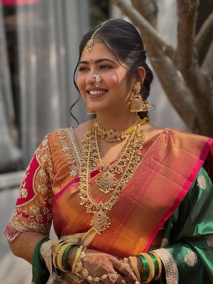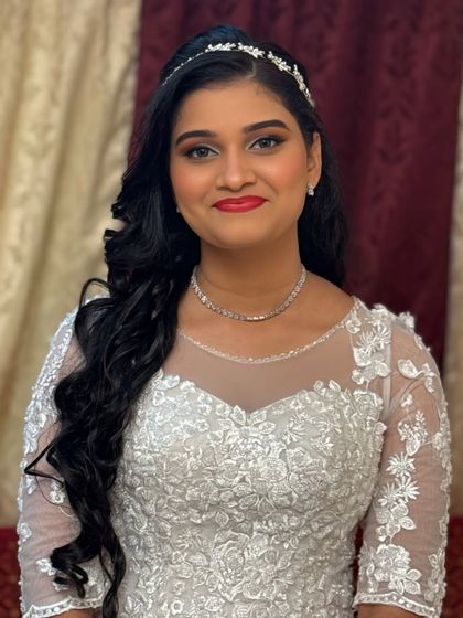 I do customized bridal and special occasion makeup with detailed skin prep, long-lasting base, and full styling including hair, jewellery, and dupatta setting for all wedding events.
