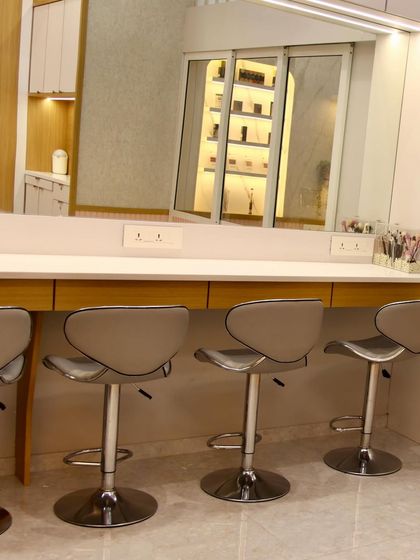 Welcome to my creative space in Goregaon West, Mumbai. My studio is designed to be a luxurious and comfortable environment for bridal trials, makeovers, and my professional makeup academy. It is fully equipped with high-end products and professional lighting to ensure the best experience for both my clients and students.