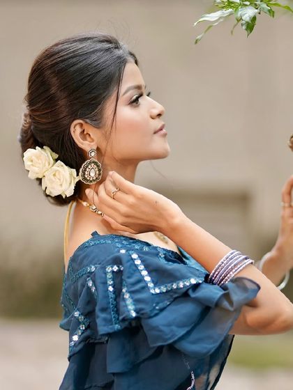 A hairstyle can complete the look. Here I showcase a variety of hairstyles we teach and create, including intricate floral buns, traditional chotis, and modern open curls. You'll find quick tutorials and inspiration for weddings, festivals, and any special occasion.