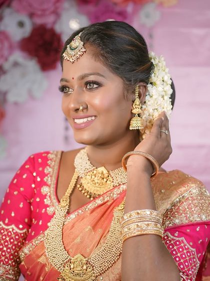 I create stunning, long-lasting looks for every bride, from soft glam to full traditional. This gallery shows complete transformations for various wedding functions like the sangeet, pheras, and reception, including specialized looks for different cultures.