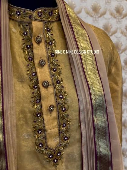 I design bespoke sherwanis that blend royal elegance with your personal style. Each piece is handcrafted with detailed embroidery and premium fabrics, perfect for making a statement on your wedding day.