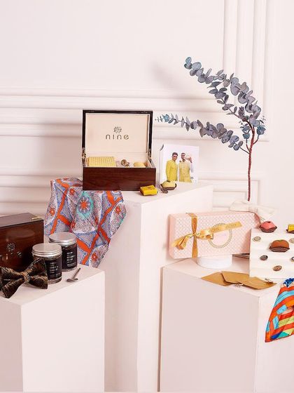 We offer personalized wedding and corporate gifts like luxury accessory sets, Italian fabric gift boxes, and bespoke shirts or jackets, all with custom packaging and names, backed by 20 years of experience.