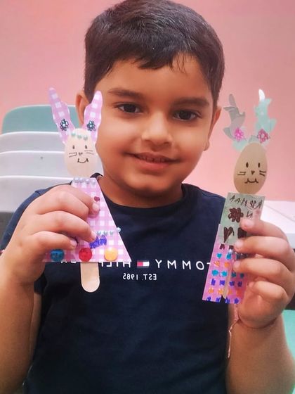 We run hands-on art and craft workshops for kids aged 4-10 where they paint, model clay, and make festival crafts in small groups at our Kalkaji center, with new activities every session and no pressure for perfect art.