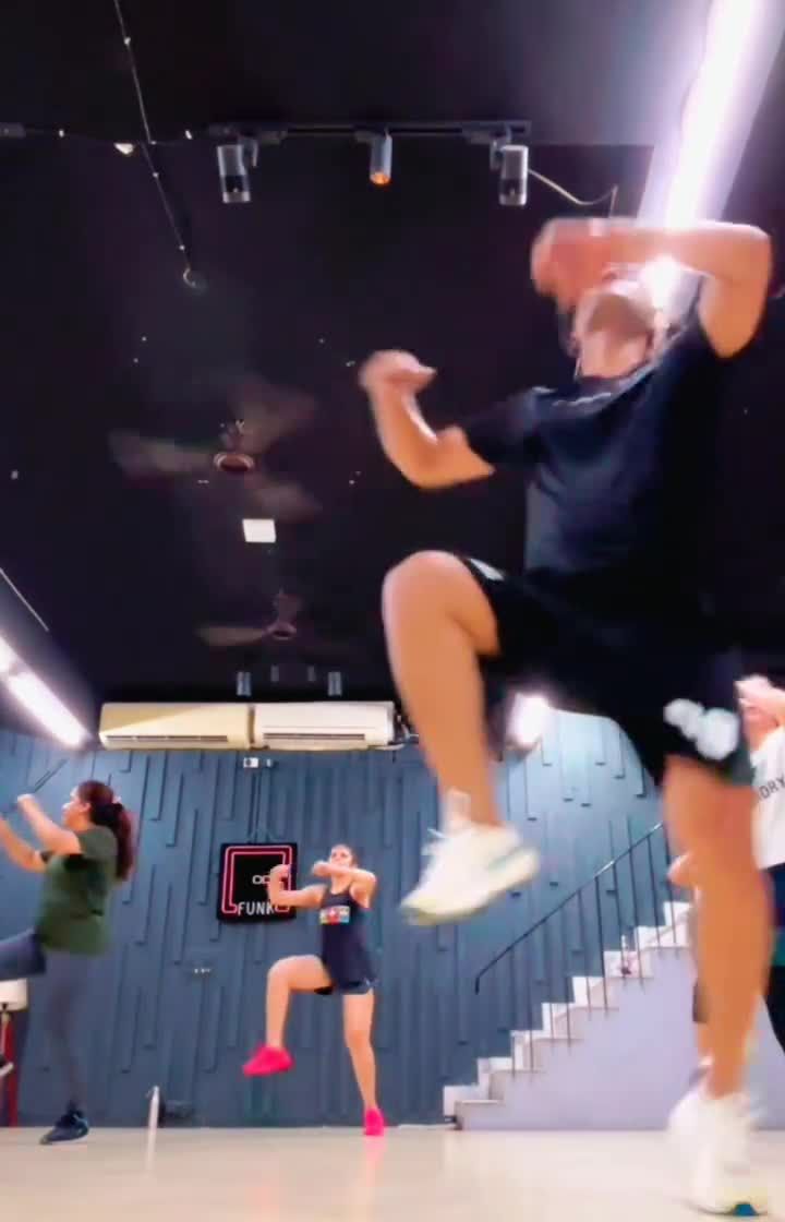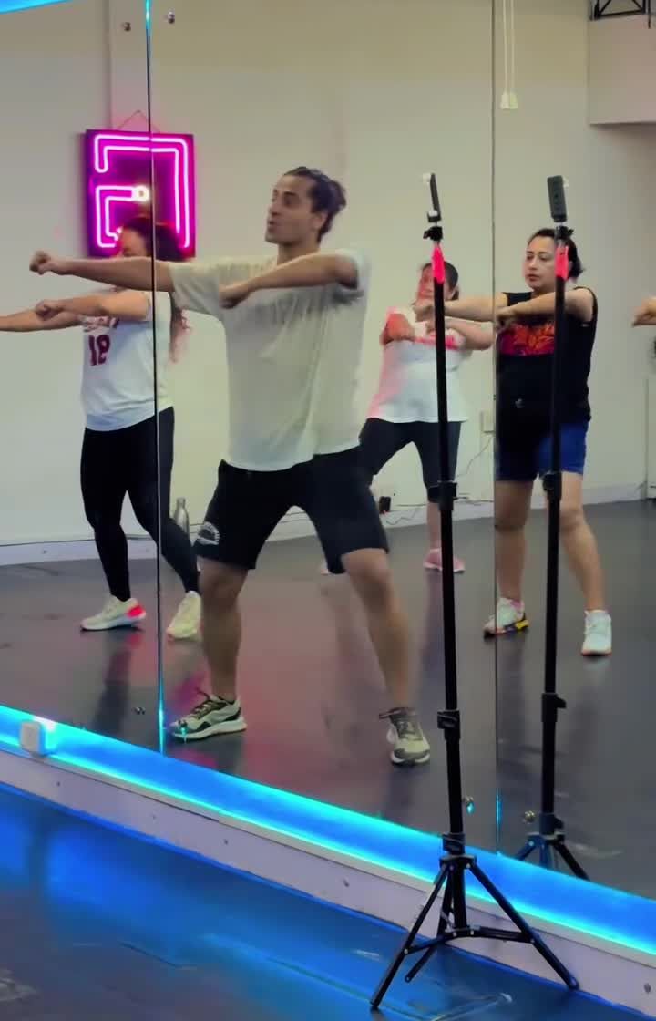 My classes are held at Gfunk Studio, which features professional sound and dynamic lighting to create an immersive party atmosphere. See how the environment, with its cool neon lights and spacious floor, adds to the energy of the workout.