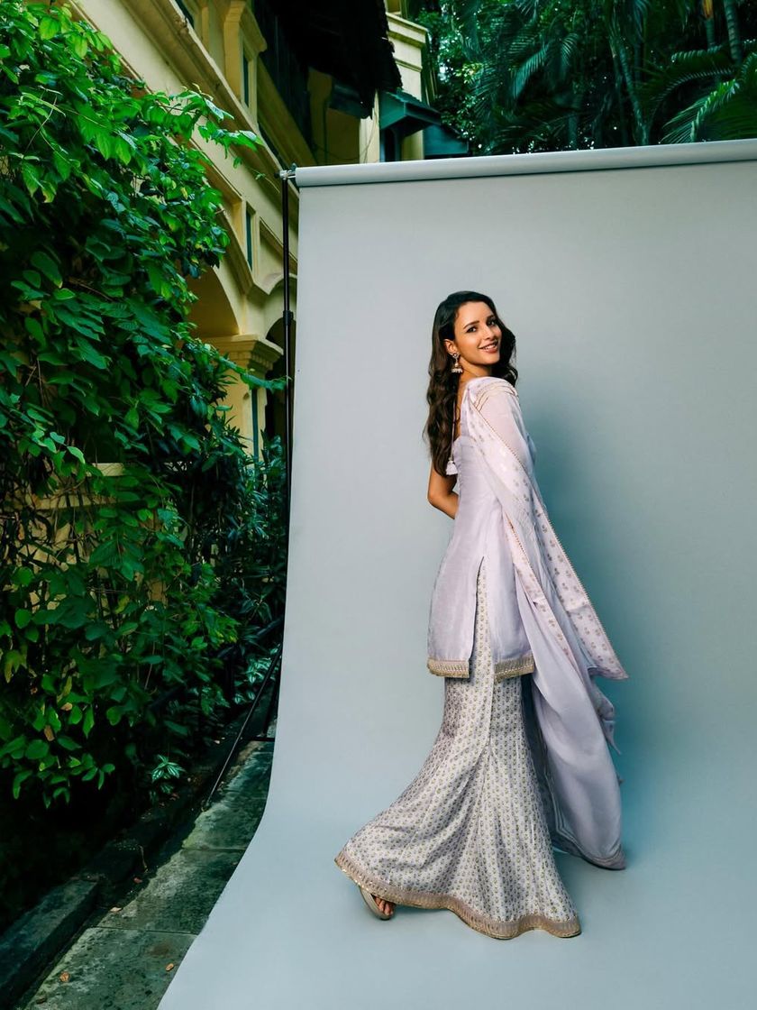 This is where I have the most fun, mixing traditions, fabrics, and silhouettes to create something totally new. This collection showcases my Indo-Western and contemporary Indian looks, from printed co-ord sets and modern shararas to styling sarees with a fresh, unexpected twist.