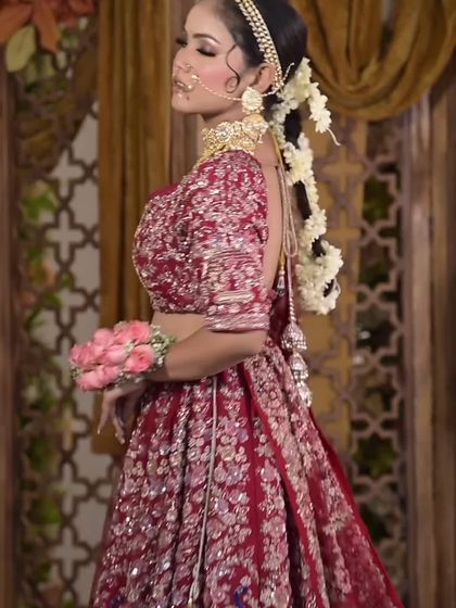 Your wedding lehenga is the most important outfit. I have a huge collection, from classic reds and maroons for a traditional look to modern pastels and unique designs. All my lehengas are heavily embroidered and give you that royal bridal feel, available to rent.