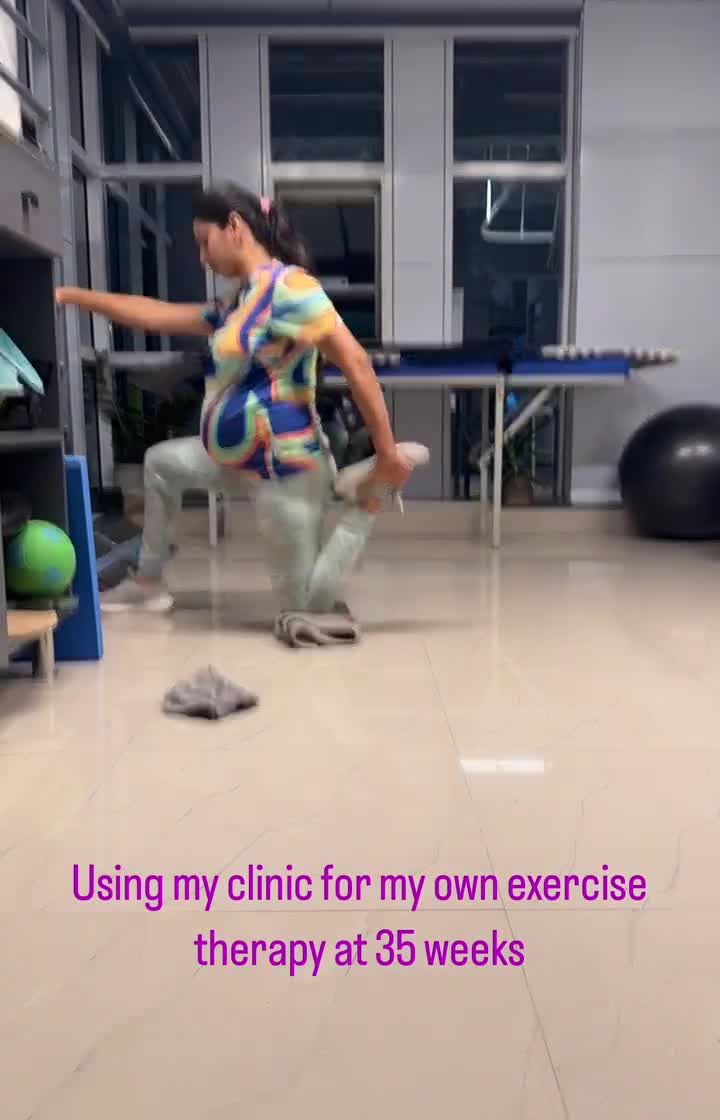 See how I stayed active and strong throughout my own pregnancy, right up to 35 weeks. I practice what I preach, using a mix of stability ball exercises, light weights, and dance to maintain strength and manage discomfort. These are the same evidence-based methods I use to guide my clients through a safe and empowering pre-natal fitness journey.