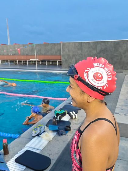 Hey, I’m Nisha. Been in the pool since I was tiny, even made it to Sydney Olympics (yep, wild ride!). After hanging up my racing cap, I just couldn’t ditch swimming, so started this academy. Our ‘Marlins’ (kids) and ‘Jellies’ (grown-ups—long story, involves jellyfish in Goa!) are like family now. We train, joke, sometimes get stung, but always stick together. For me, it’s not just medals, it’s confidence, friends, and a good laugh.
