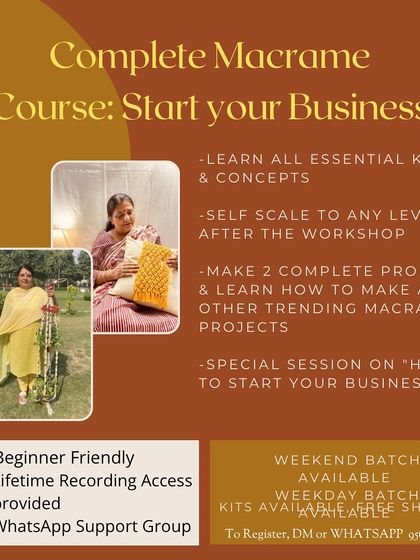 I teach live online crochet and macrame workshops for beginners with free material kits, lifetime recordings, and personal support so you can learn and start making from home.