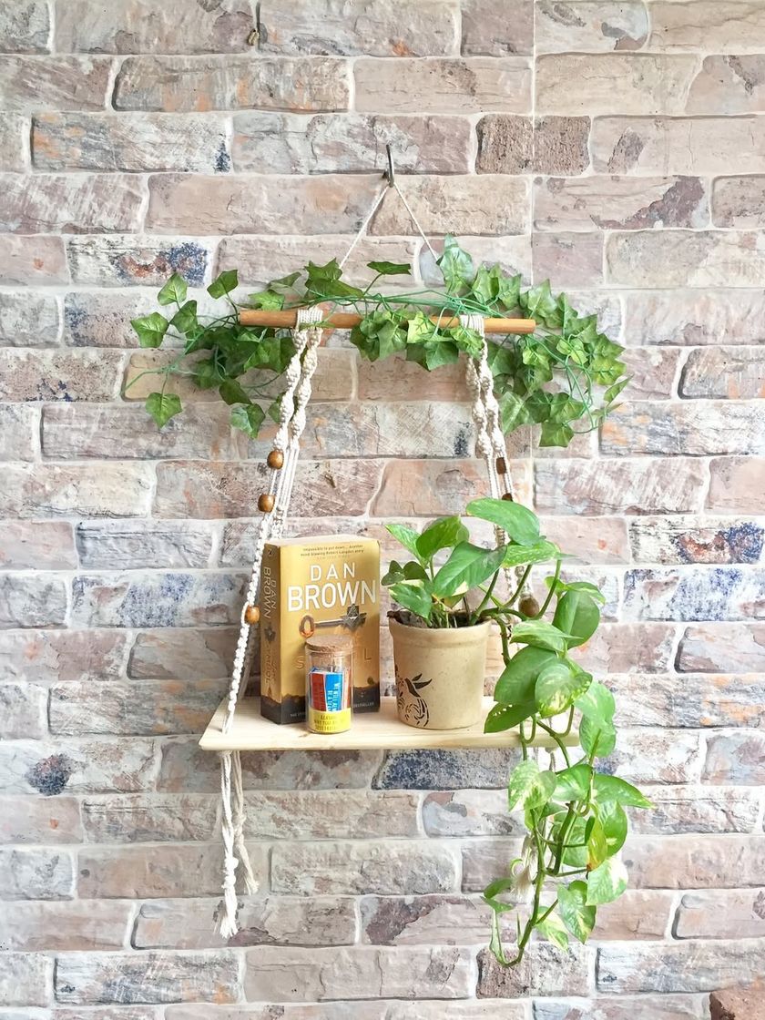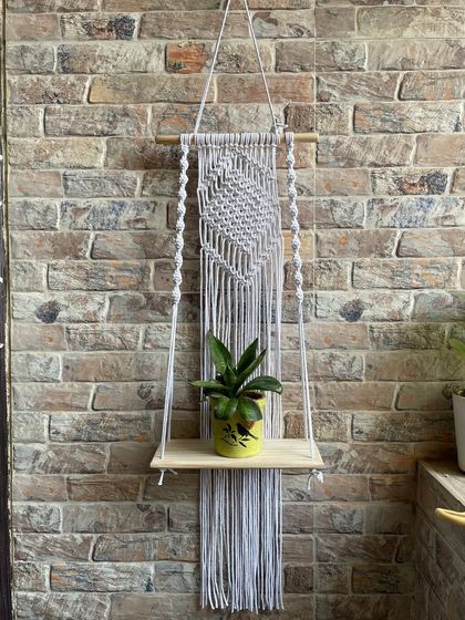 Find the perfect spot for your plants, books, and little treasures with my handmade wall shelves. Each one is knotted with care and can be customized in color, size, and design to match your home's style, whether for a balcony, corridor, or living room.